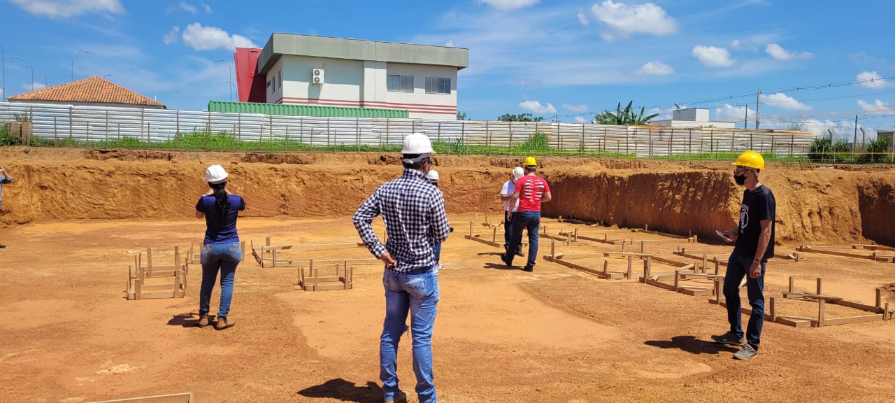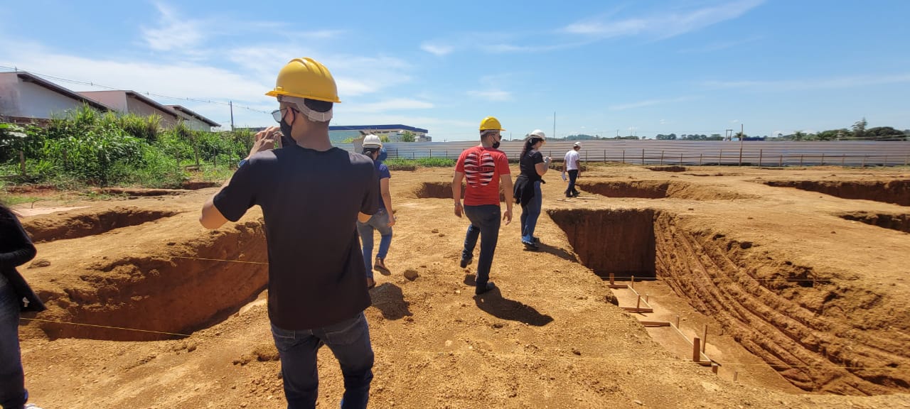 Ainda em campo, foram apresentados elementos extras presentes na engenharia civil, como a importância de um projeto bem elaborado e sua leitura, estudos de acessibilidade e instalações provisórias de uma obra.