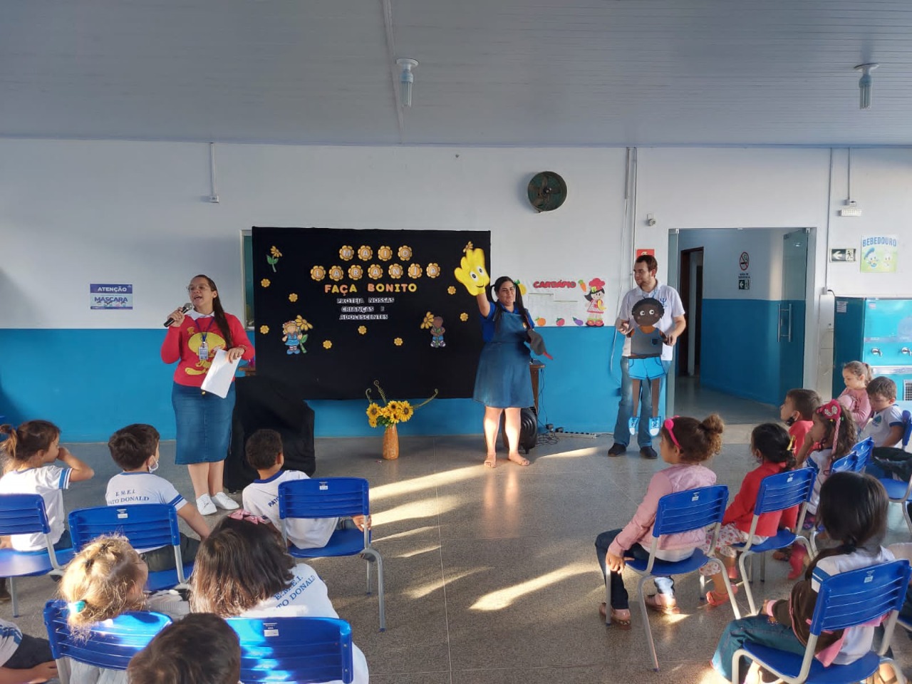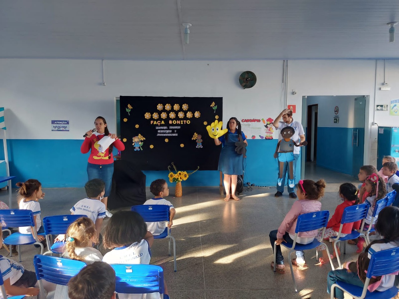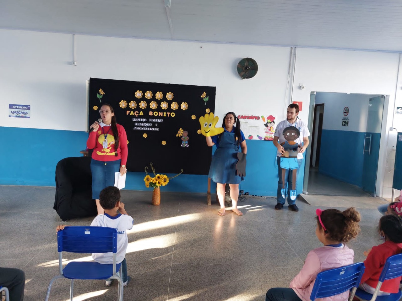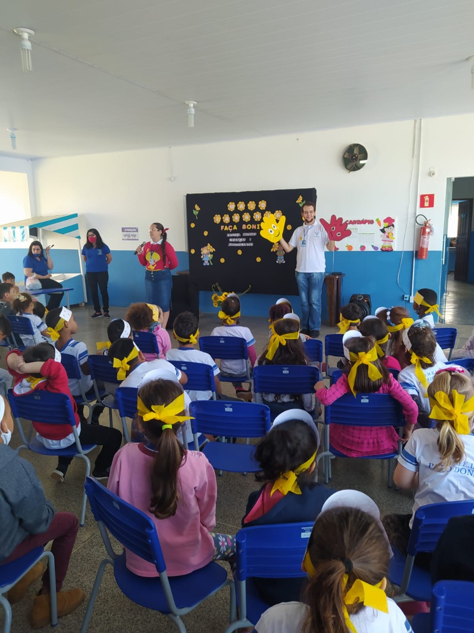 A convite da orientadora escola Jane Félix a palestra foi ministrada pelos acadêmicos: Daiane Gracieli, Denise Taquini e Hermínio Júnior, em que realizaram orientações aos alunos da Escola Pato Donaldo das séries: pré I, pré II e 1º ano, acerca da temática de prevenção ao abuso sexual de crianças e adolescentes, nas quais as informações e orientações sobre a temática foram desenvolvidas por meio do verbal e do lúdico com simulação de teatro infantil, tornando o assunto leve e compreensível para as crianças, auxiliando assim em seu desenvolvimento físico e emocional.