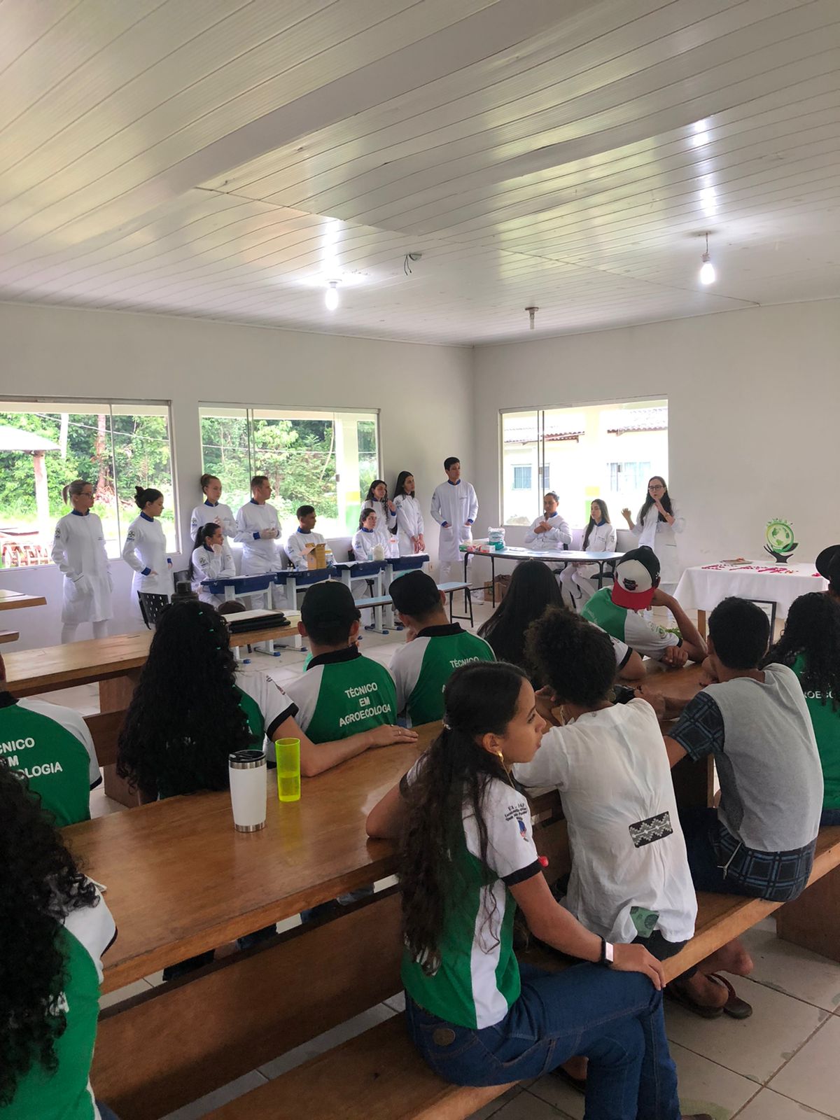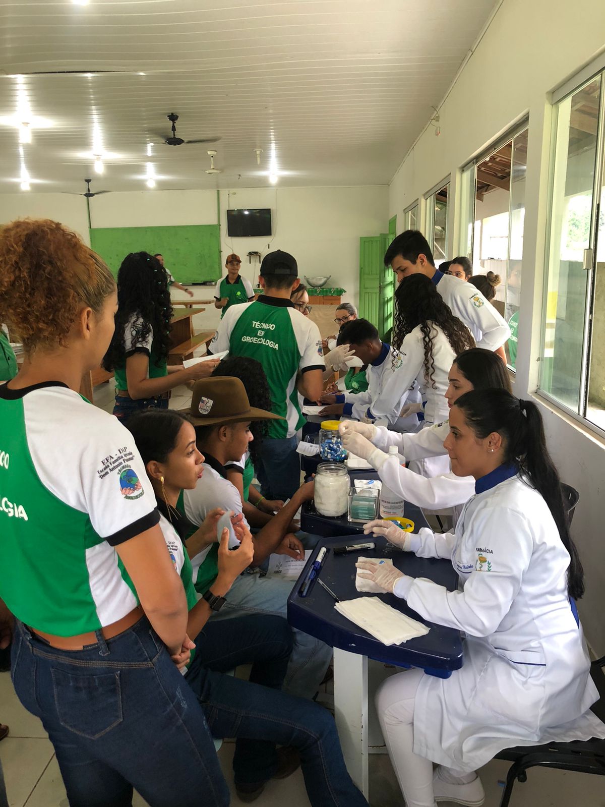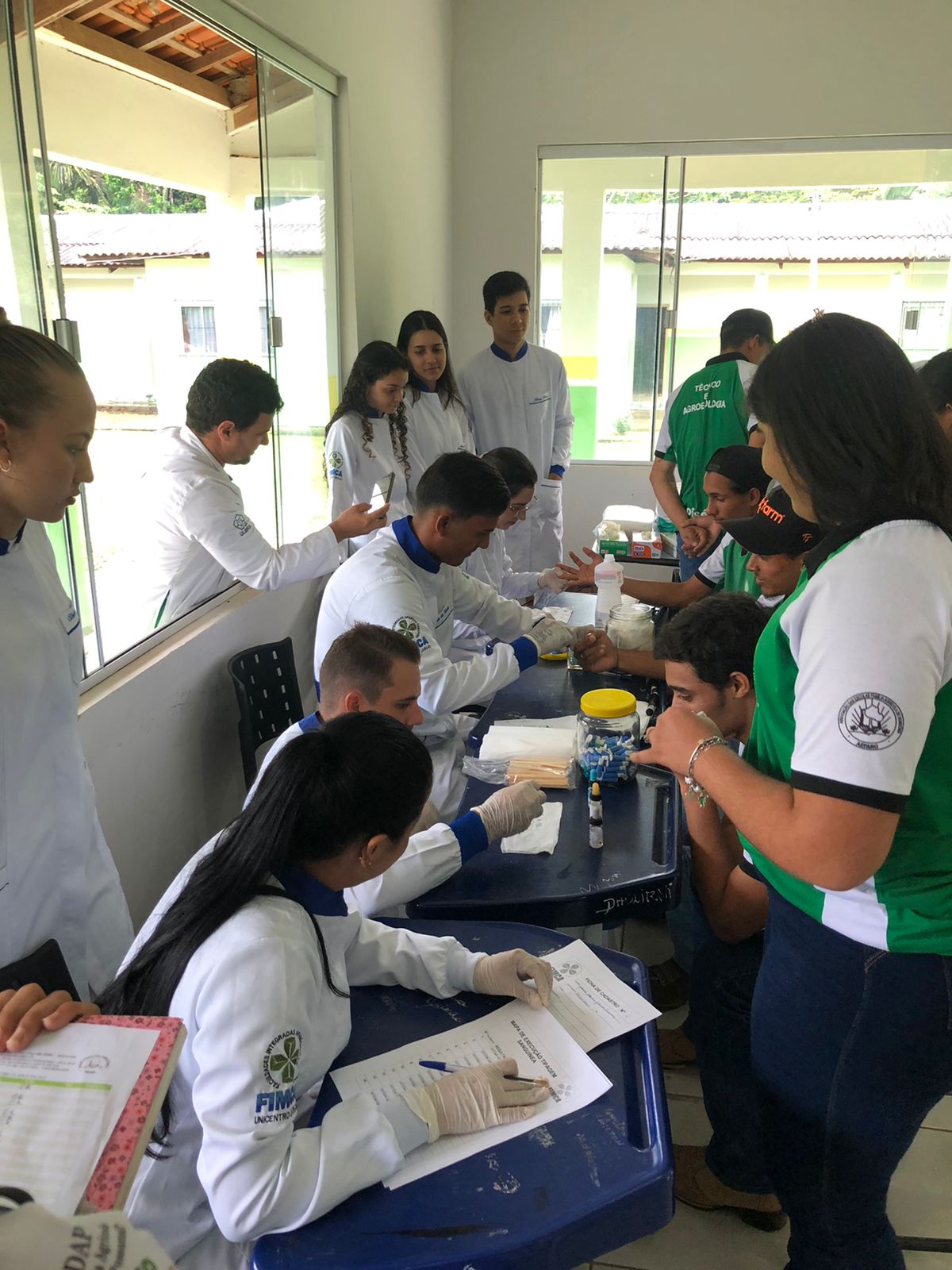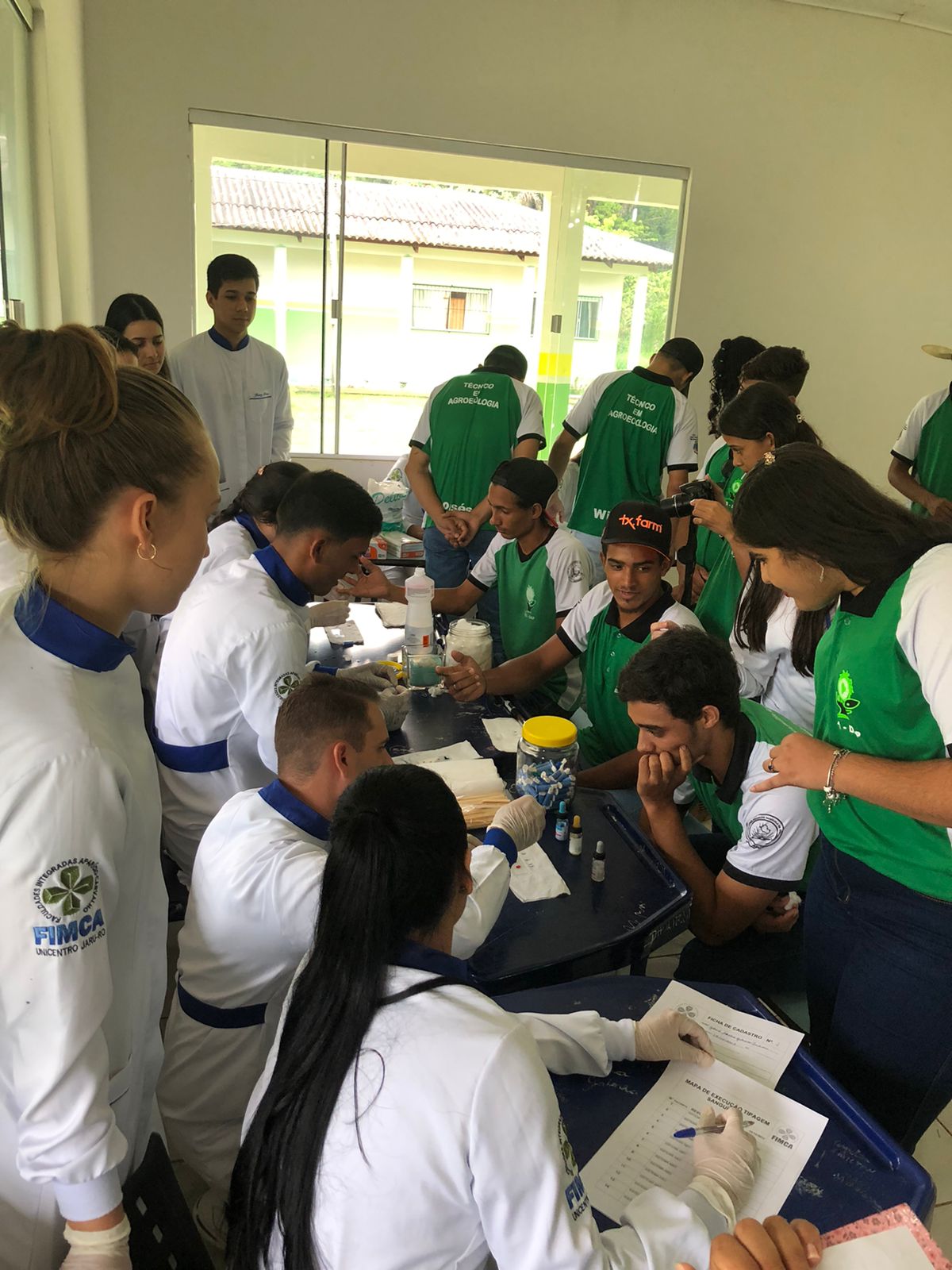 Os acadêmicos do 4º período do curso de Farmácia da FIMCA Jaru realizaram, nesta segunda-feira (10), uma aula prática externa de Tipagem Sanguínea com os alunos da Escola da Família Agrícola Dom Antônio Possamai – EFADAP. Na oportunidade a Professora Keila Vitorino e a coordenadora Julia Pimentel, explanaram sobre a técnica, sobre a tipagem sanguínea e a finalidade desta na prática clínica.