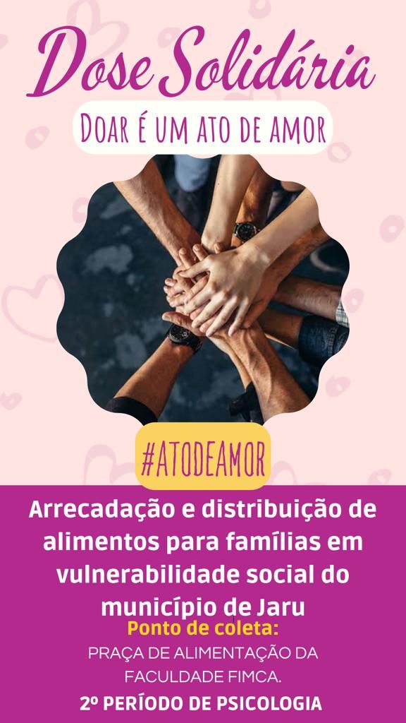Buscando colocar em prática a solidariedade e empatia para dar àqueles que mais precisam algum tipo de atenção, num momento tão difícil que a população tem enfrentado, se cada um doar um pouco, podemos fazer a diferença na vida de muitas pessoas necessitadas.