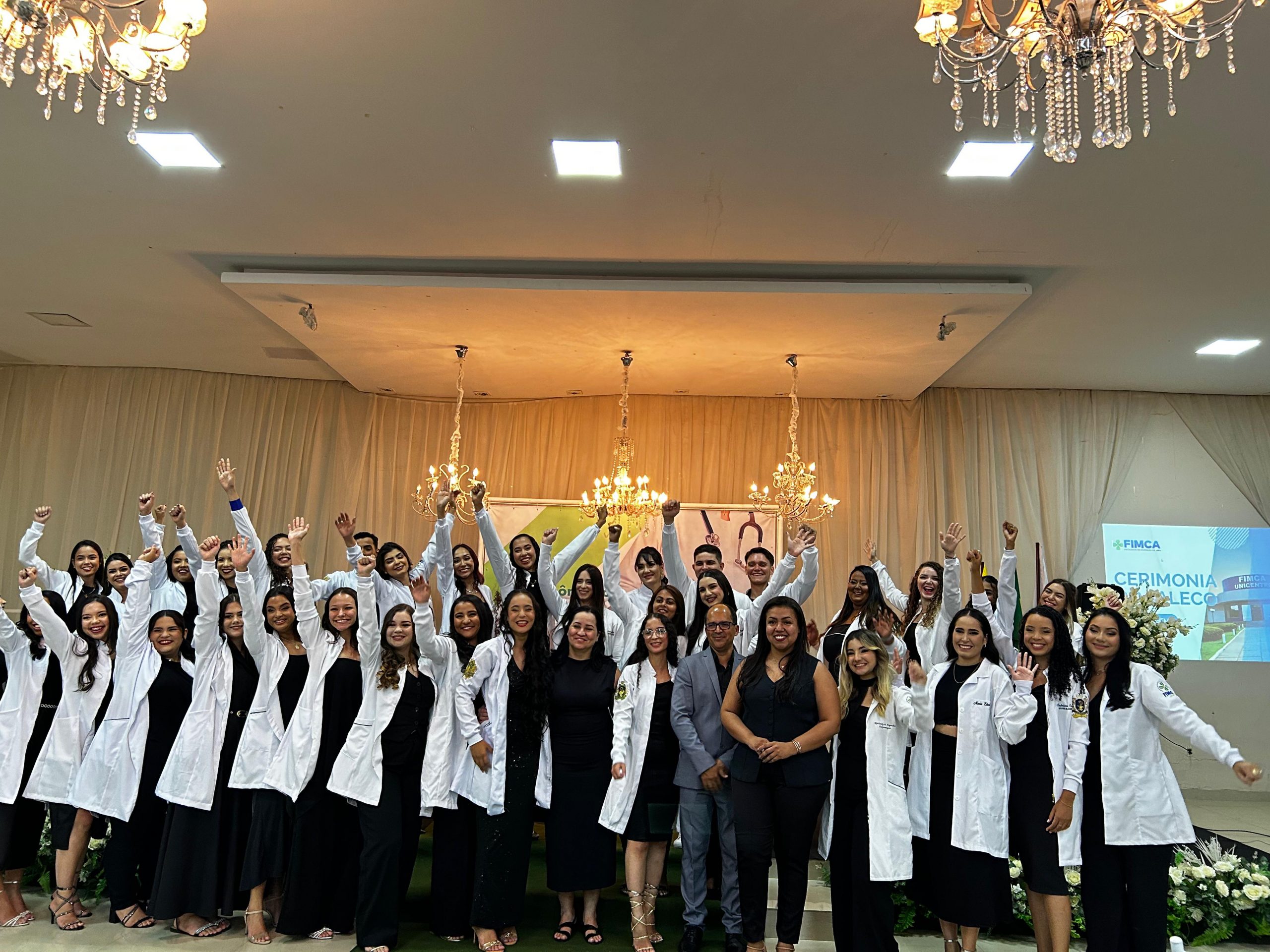 Na última quinta-feira, 15/05/2025, o Espaço Sara Eventos foi palco de um momento marcante e emocionante para os estudantes do curso de Enfermagem da FIMCA Jaru. A tradicional Cerimônia do Jaleco reuniu alunos, professores e autoridades acadêmicas para celebrar o ingresso dos futuros profissionais de saúde no universo da Enfermagem, com uma cerimônia cheia de simbolismo e entusiasmo.