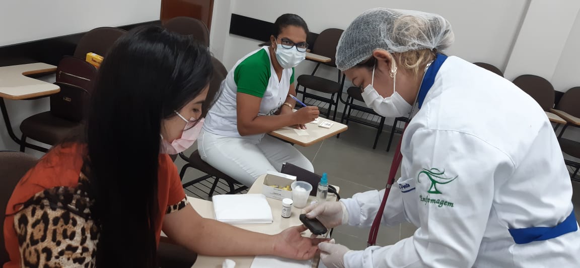 A Faculdade Fimca-Unicentro por meio dos acadêmicos de enfermagem do 6º período, promoveram na manhã do ultimo sábado (28/08), a conscientização para o controle da hipertensão arterial e diabetes, desenvolveram uma ação educativa para o público estudantil e funcionários da instituição. A ação foi coordenada pela professora da disciplina de Cuidados à Saúde do Adulto e Idoso II, Márcia Gisele, contou com o apoio da Coordenação do Núcleo de Saúde – enfermagem, Coordenação Geral da Unidade e também o apoio da Secretaria Municipal de Saúde do munícipio.