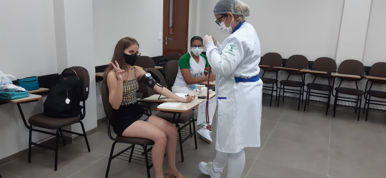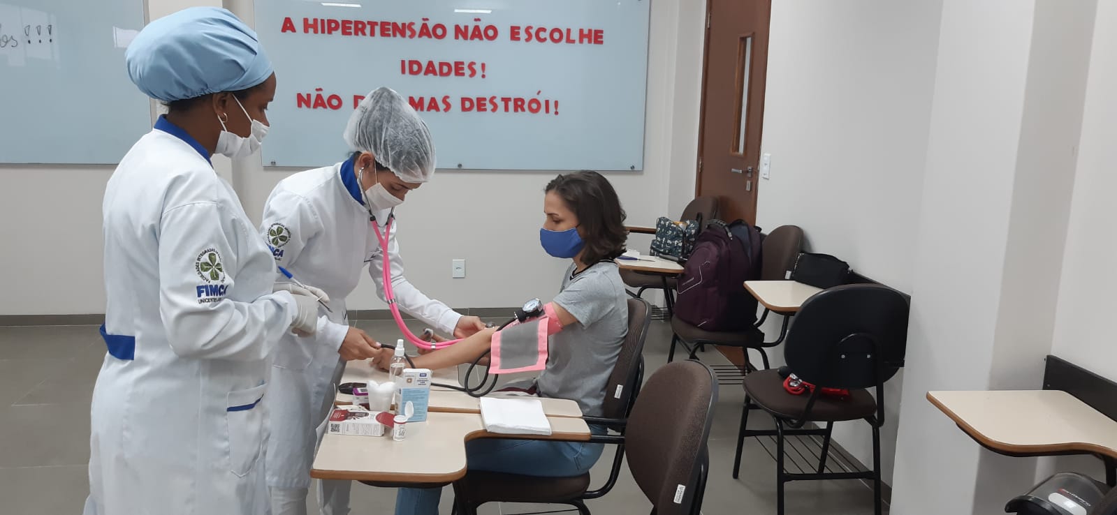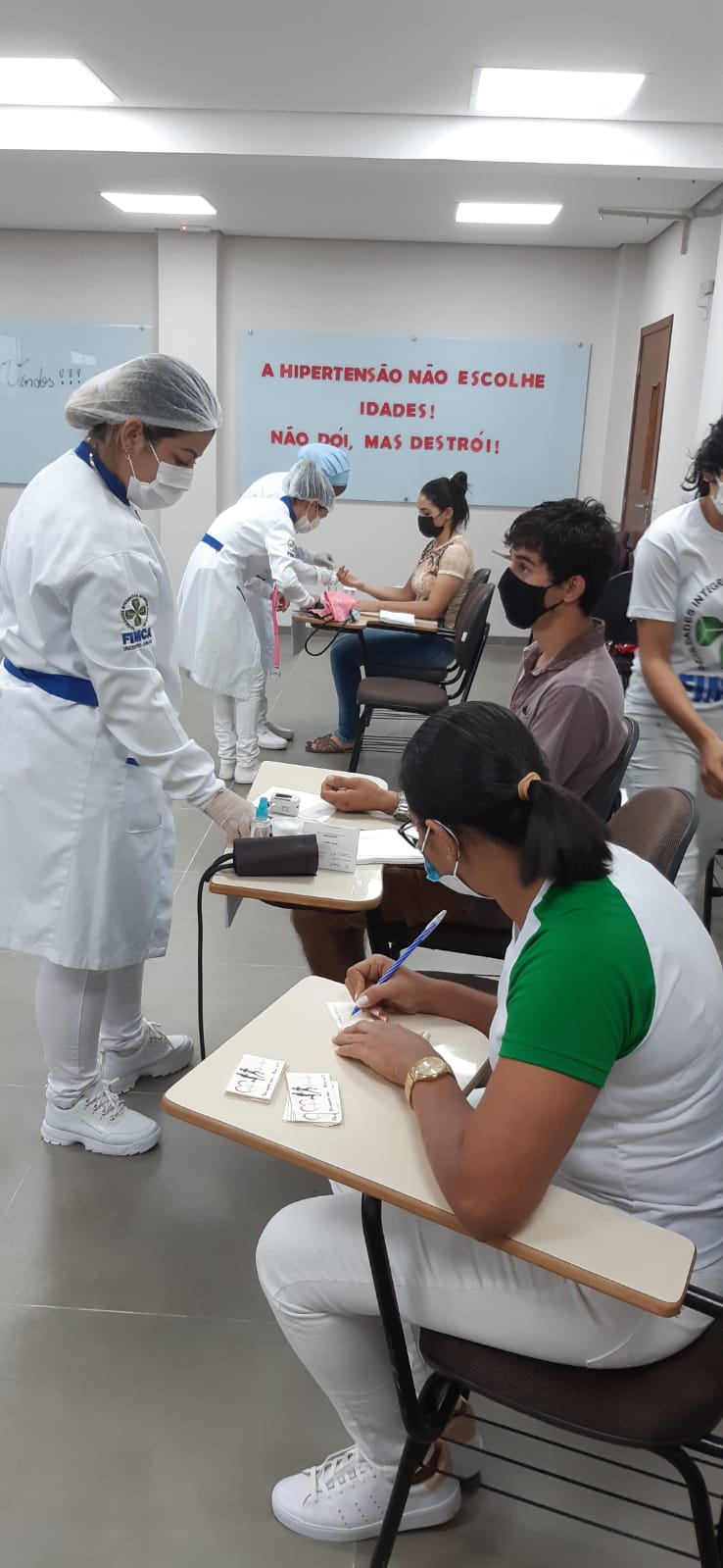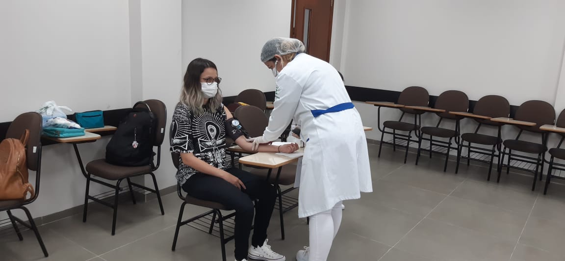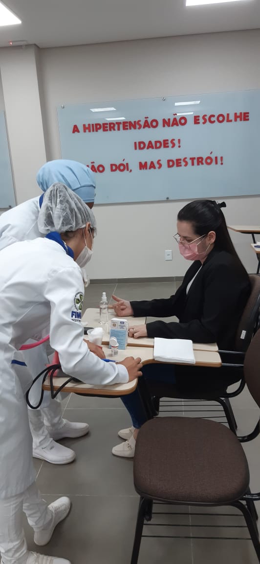 A ação contou com a participação dos acadêmicos de todos os cursos, e seguiu todos os protocolos de segurança. Na oportunidade, os mesmos foram instruídos sobre a necessidade de hábitos saudáveis como atividades físicas, alimentação regular, entre outros. A hipertensão, conhecida como pressão alta, assim como a diabetes mellitus, danifica o revestimento das artérias, promovendo inúmeras disfunções arteriais, o que representa um risco aumentado para doenças cardiovasculares. A hipertensão arterial é uma condição silenciosa e sem sintomas que, justamente por isso, se torna perigosa, pois muitas vezes a pessoa somente apresenta sintomas quando ocorre disfunção no organismo. O melhor caminho para prevenir e controlar ambas as condições é a adoção de hábitos saudáveis, como reduzir o consumo de sal; consumir diariamente frutas, legumes e hortaliças; evitar alimentos processados e ultraprocessados; não fumar; não ingerir bebidas alcoólicas; reduzir o estresse e praticar atividades físicas.