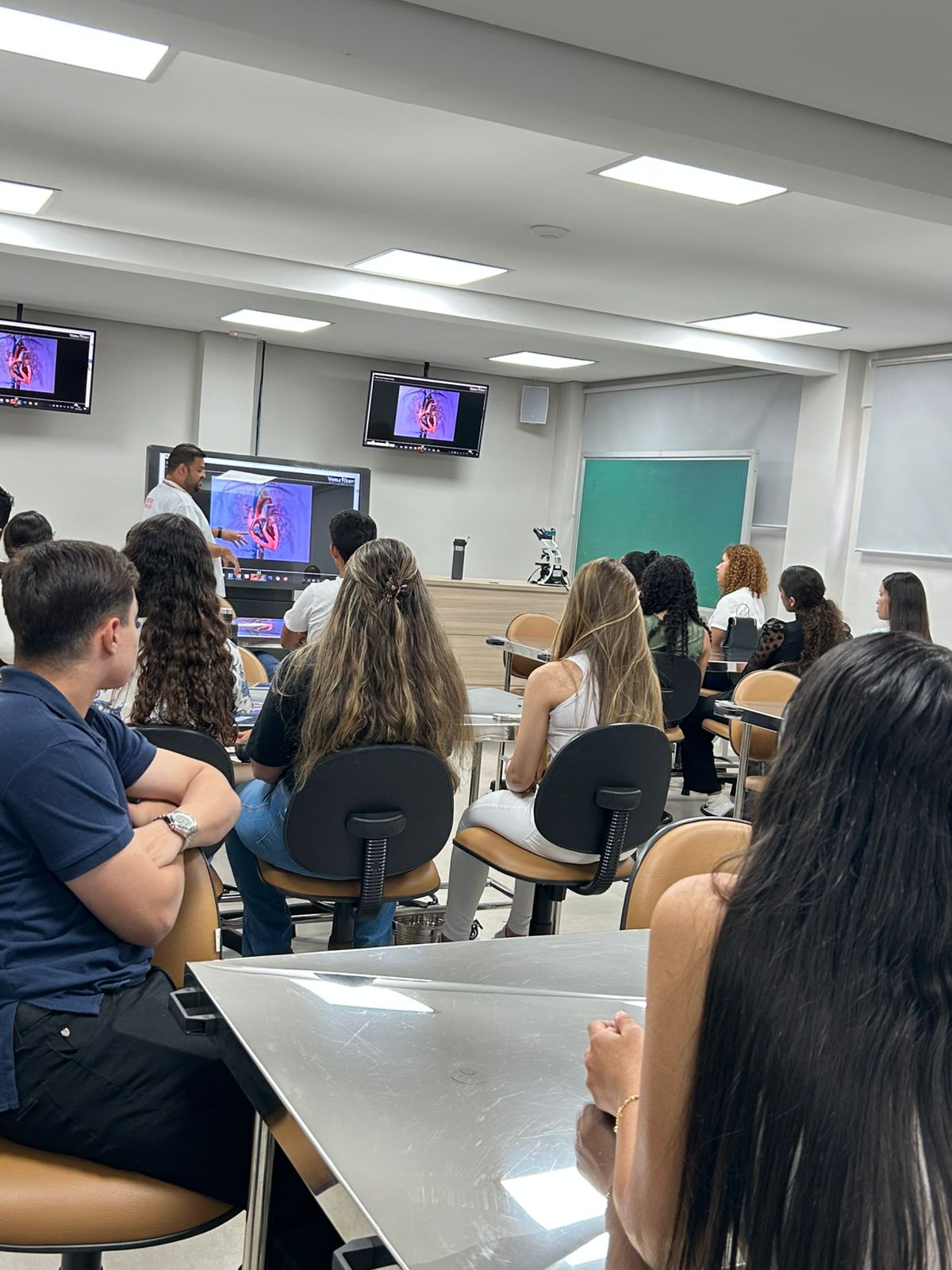 A aula também incluiu visitas aos laboratórios de anatomia, proporcionando aos participantes uma oportunidade única de explorar o corpo humano de maneira detalhada e dinâmica. Os alunos puderam observar de perto as estruturas anatômicas, o que complementou a vivência prática do curso.