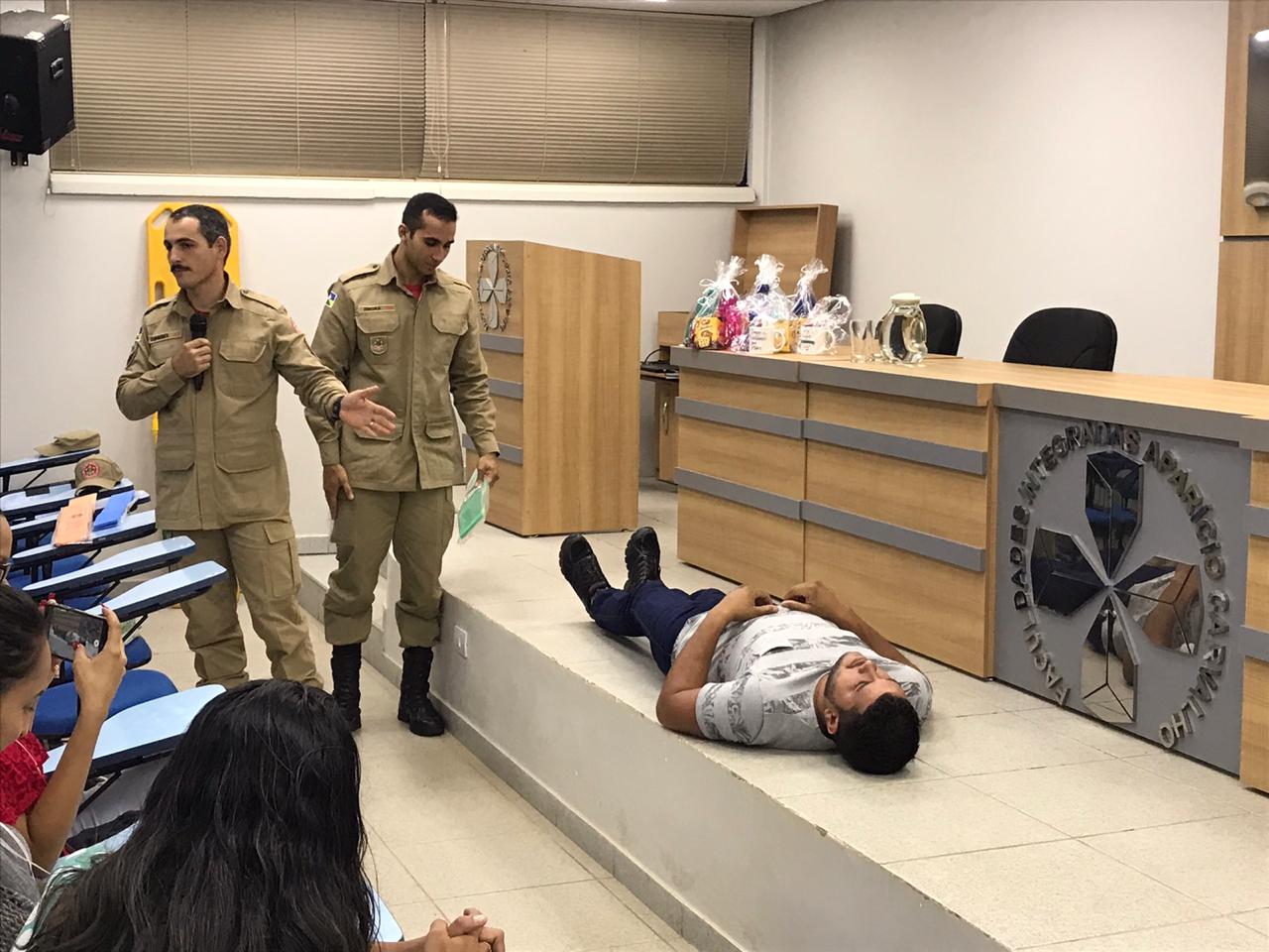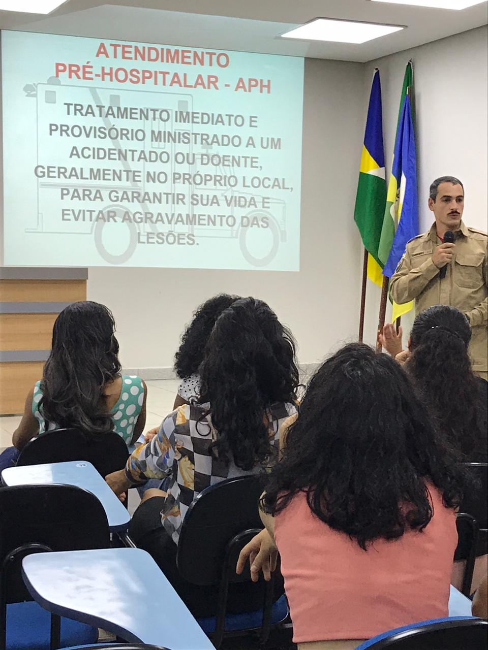 No segundo dia do evento (20), os acadêmicos receberam uma palestra de Cuidados Pré-Hospitalares Emergenciais, ministrado pelo Corpo de Bombeiros da cidade de Jaru/RO, onde os acadêmicos puderam visualizar práticas para serem adotadas em caso de atendimentos de emergência.