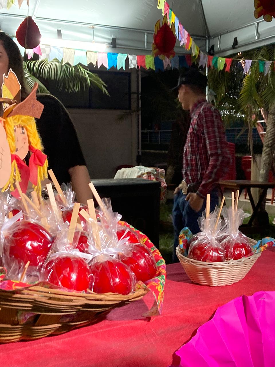 Os alunos dos cursos de Direito, Odontologia, Enfermagem, Psicologia e Farmácia se organizaram e se distribuíram no total 10 barracas com comidas e bebidas típicas na área externa da instituição, no estacionamento. Em torno das barracas haviam cadeiras e mesas para que todos pudessem se acomodar e experimentar os alimentos.