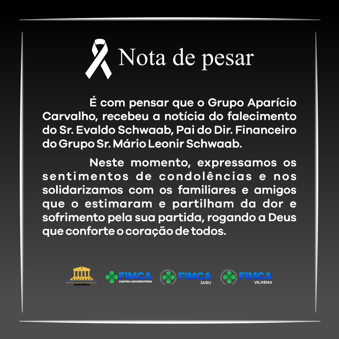 É com pesar que o Grupo Aparício Carvalho, recebeu a notícia do falecimento do Sr. Evaldo Schwaab, Pai do Diretor Financeiro do Grupo, Sr. Mario Schwaab.