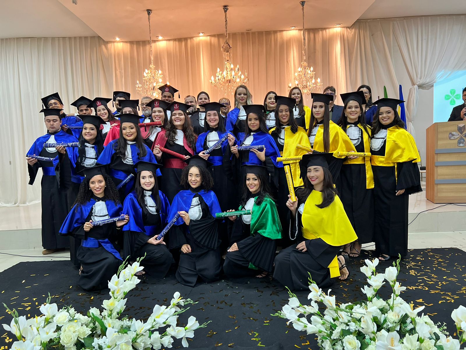 Os coordenadores dos cursos de enfermagem, farmácia, odontologia e psicologia também estiveram presentes para parabenizar os formandos e celebrar suas conquistas.