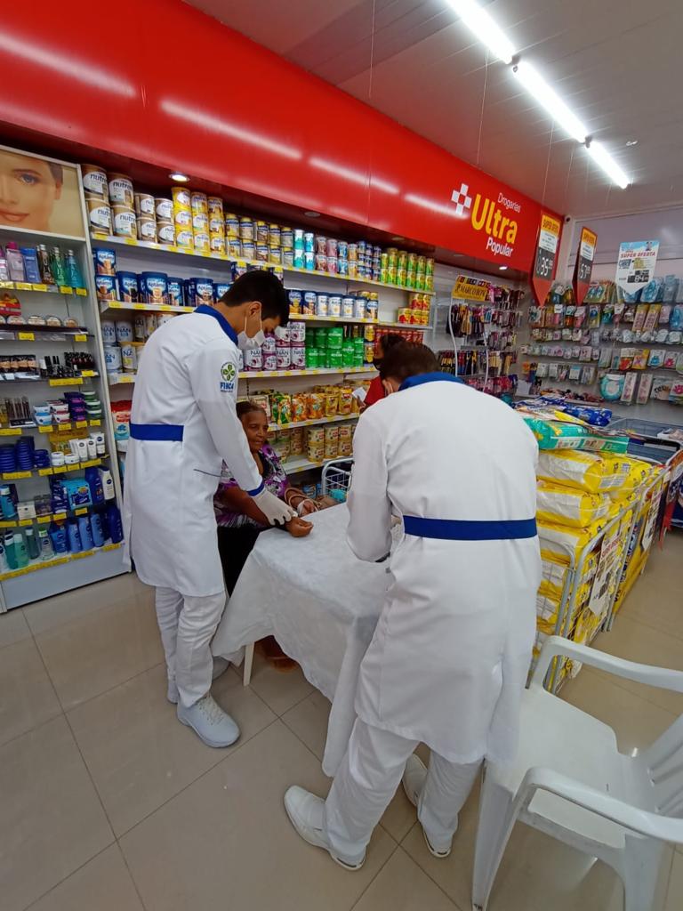A coordenação de farmácia em parceria com a Rede de Farmácia Ultrapopular, por meio do farmacêutico responsável Técnico Elton Jaques Souza Domiciano, implantaram o Projeto Promoção da Qualidade de Vida, no qual os acadêmicos do 2°, 3°, 5° e 7° período de farmácia da FIMCA UNICENTRO realizam atendimentos a população e aos clientes, nas dependências da Drogaria. Os procedimentos realizados pelos acadêmicos com supervisão do farmacêutico, são aferição da pressão arterial, glicemia capilar e orientações sobre cuidados de saúde, com intuito de promover a qualidade de vida e o bem-estar. O papel primordial do farmacêutico, consiste justamente na promoção, proteção e recuperação da saúde, e o projeto proporciona aos acadêmicos uma atuação direta com sua principal atividade profissional que é atenção farmacêutica e contribuindo assim para o desenvolvimento pessoal, social e profissional dos mesmos. A Instituição parabeniza a todos os acadêmicos participantes e agradece a parceria com a Rede de Farmácia Ultrapopular.